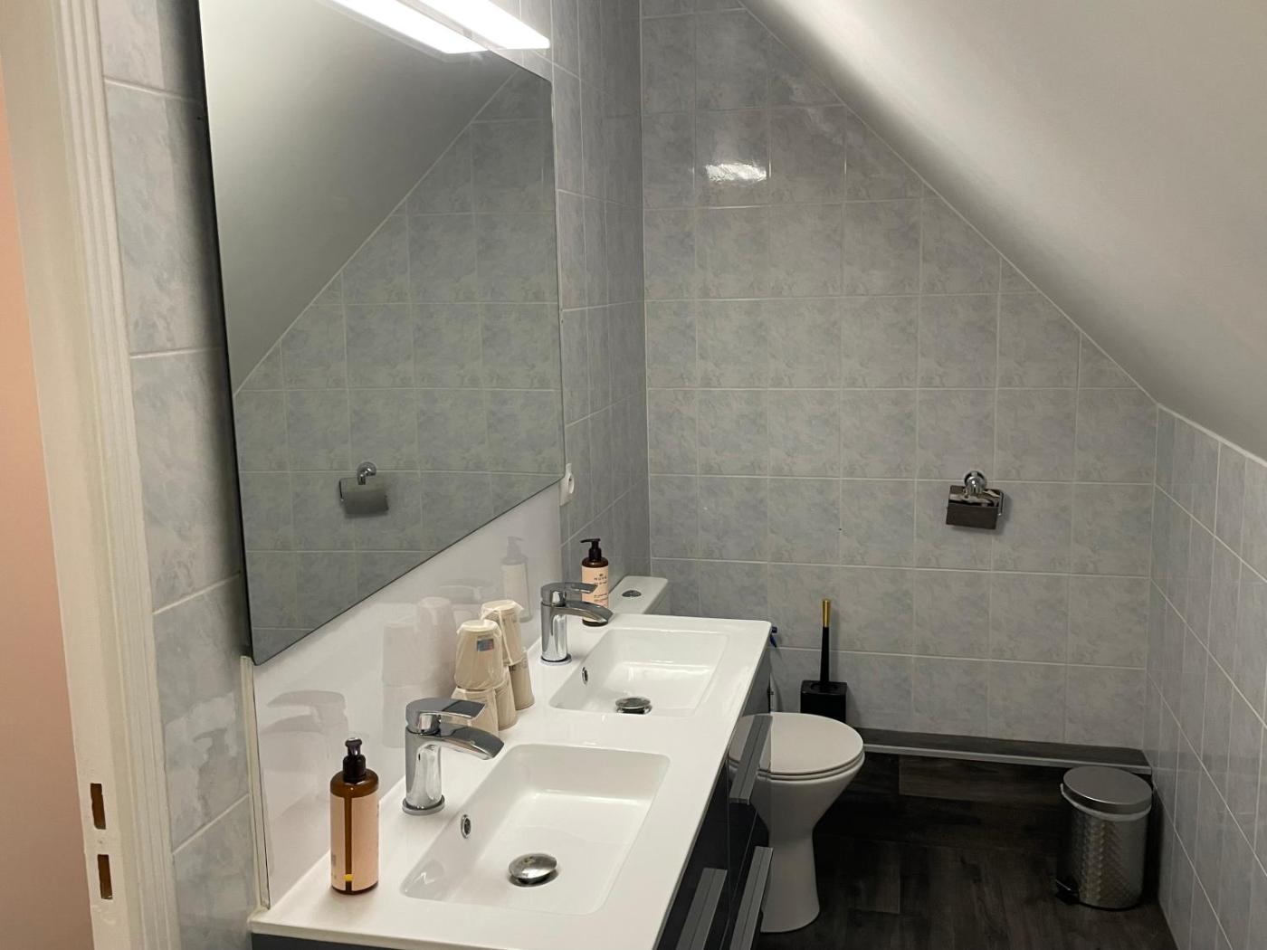 Chambre Double - Vue sur Jardin. Offering free toiletries and bathrobes, this double room includes a shared bathroom with a shower, a hairdryer and slippers. In the kitchen, guests will find a stovetop, a refrigerator, a dishwasher and kitchenware. The spacious double room offers a washing machine, a private entrance, soundproof walls, a flat-screen TV, as well as garden views. The unit offers 2 beds. ;