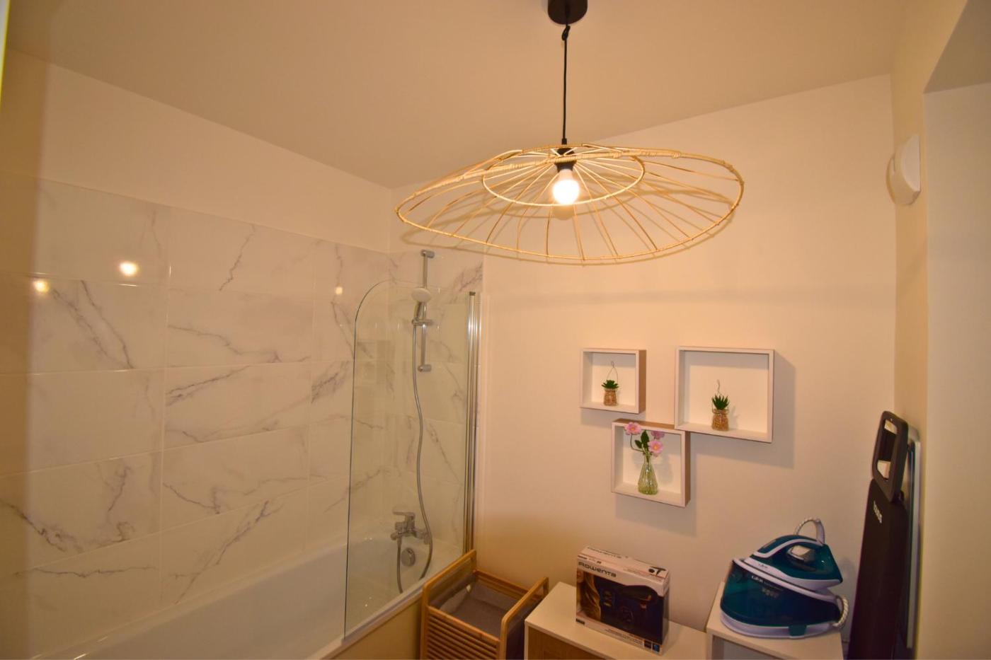 Appartement 2 Chambres. This spacious apartment is comprised of 1 living room, 2 separate bedrooms and 1 bathroom with a bath and free toiletries. The well-fitted kitchen features a stovetop, a refrigerator, kitchenware and an oven. The air-conditioned apartment offers a flat-screen TV with streaming services, a washing machine, soundproof walls, a tea and coffee maker as well as city views. The unit offers 4 beds.