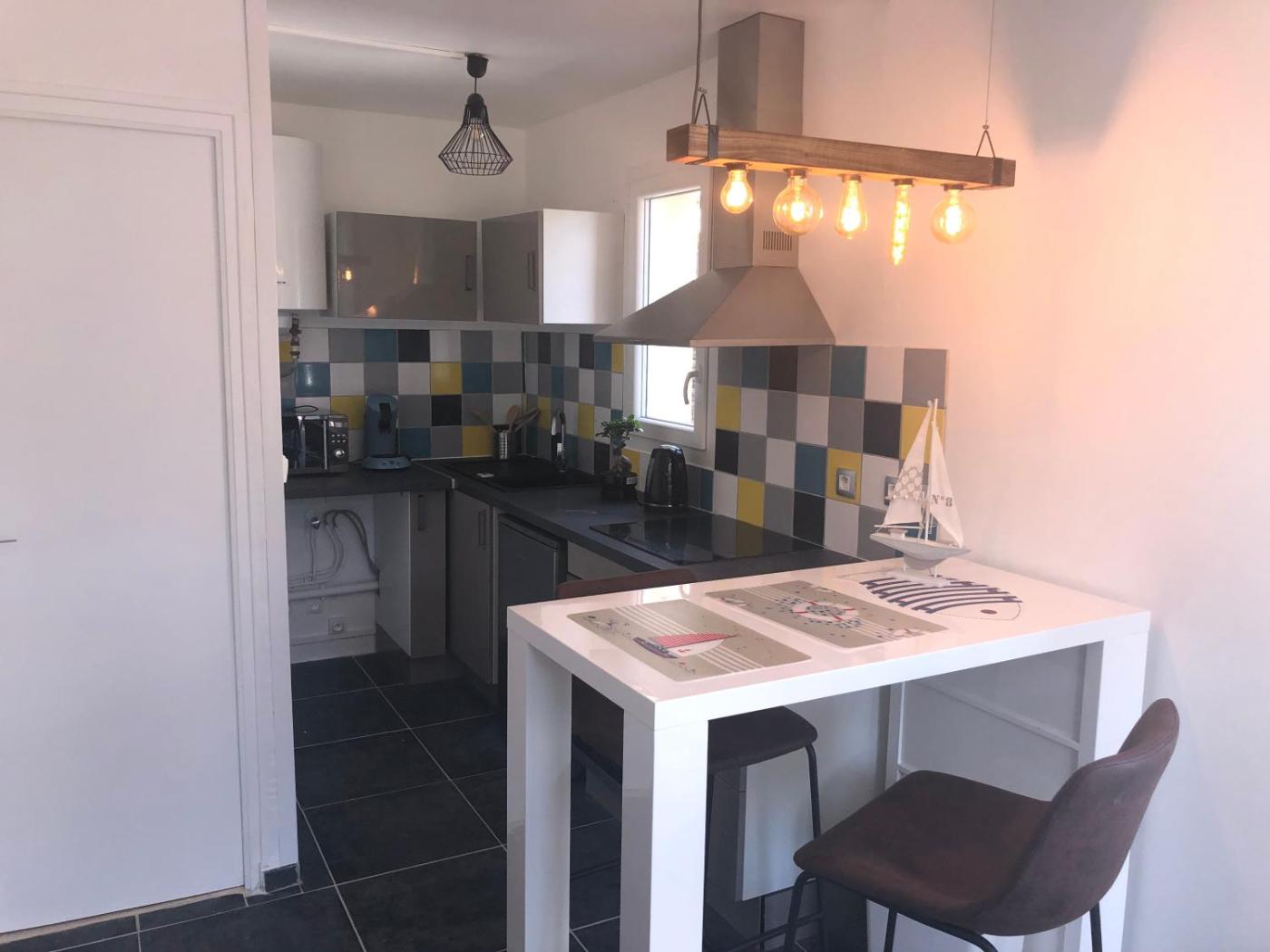 Appartement 1 Chambre. This apartment consists of 1 bedroom, a kitchen and 1 bathroom with a shower and a bidet. Guests can make meals in the kitchen that is equipped with a stovetop, a refrigerator, kitchenware and an oven. The apartment provides a flat-screen TV, a tea and coffee maker, a dining area, a sofa as well as sea views. The unit offers 1 bed.