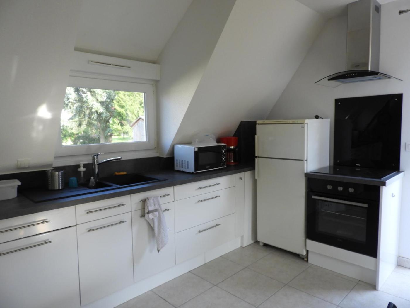 Appartement - Vue sur Jardin. Featuring a private entrance, this apartment is comprised of 1 living room, 1 separate bedroom and 1 bathroom with a shower and a hairdryer. The well-fitted kitchen features a stovetop, a refrigerator, a dishwasher and kitchenware. Boasting a terrace with garden views, this apartment also offers soundproof walls and a flat-screen TV with satellite channels. The unit offers 2 beds.