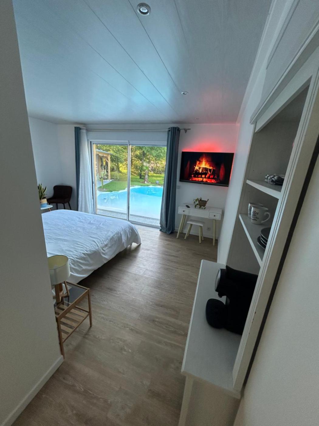 Chambre Double - Vue sur Piscine. This double room features a pool with a view, hot tub and spa bath. The spacious double room features air conditioning, a private entrance, a terrace with garden views as well as a private bathroom boasting a shower. The unit has 2 beds.