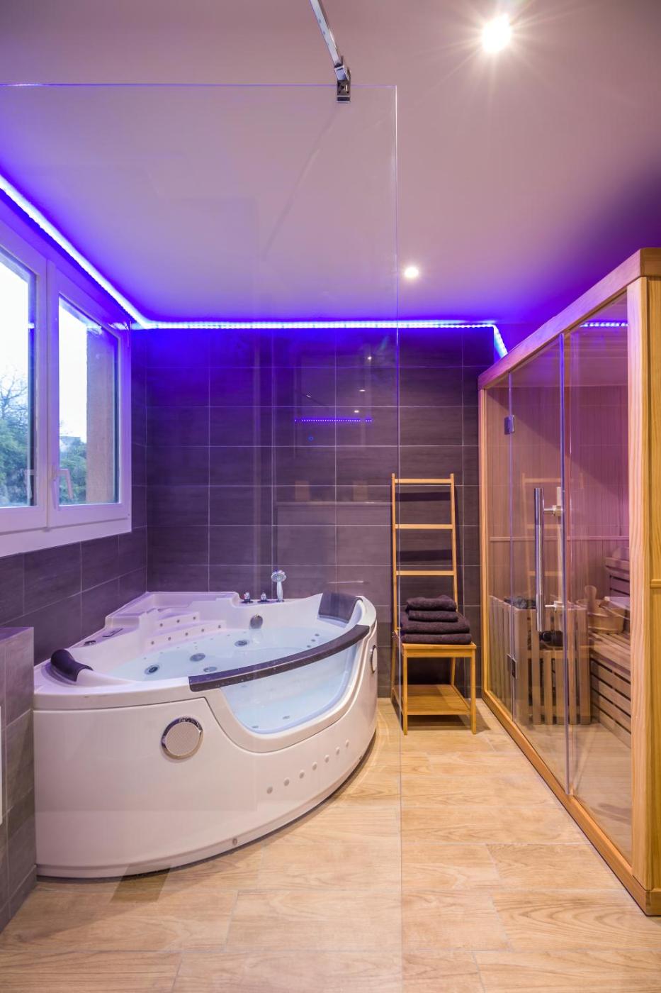 Appartement 1 Chambre. This apartments standout features are the hot tub, spa bath and sauna. The well-fitted kitchen has a stovetop, a refrigerator, a dishwasher and kitchenware. The apartment features a flat-screen TV with streaming services, a washing machine, a private entrance, a tea and coffee maker as well as sea views. The unit has 1 bed.