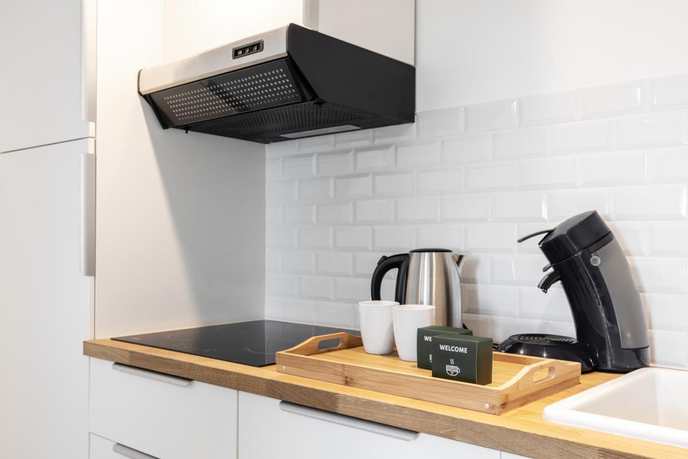 Cet appartement se compose de 1 chambre, dun salon, dune cuisine entièrement équipée avec un réfrigérateur et une machine à café, ainsi que de 1 salle de bains avec une douche et un sèche-cheveux. Une télévision à écran plat avec les chaînes du satellite est à disposition.