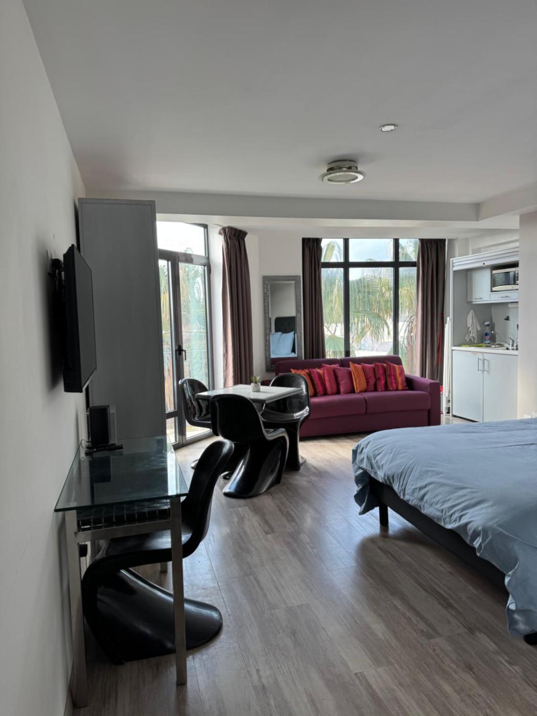 Appartement 1 Chambre. The well-equipped kitchenette features a stovetop, a refrigerator, kitchenware and a microwave. The air-conditioned apartment offers a flat-screen TV, soundproof walls, a coffee machine, a dining area as well as city views. The unit offers 2 beds.