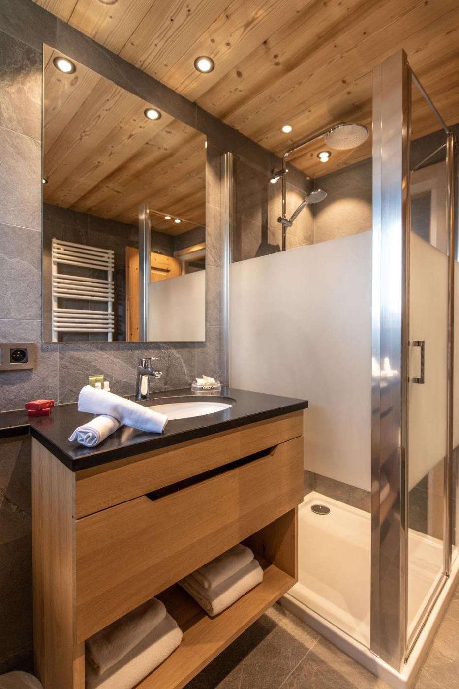 Suite. La suite dispose dun salon, dun grand balcon avec vue sur la chaîne du Mont-Blanc, dune salle de bain et dune salle deau. Une télévision par satellite à écran plat et un réfrigérateur sont également fournis. ;