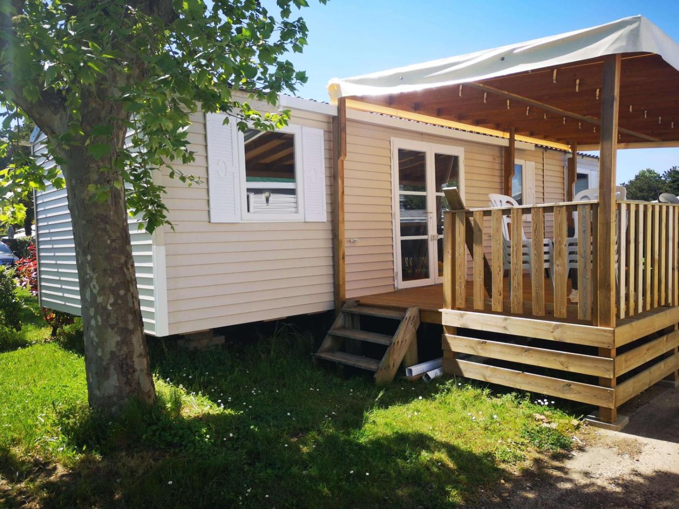 Mobile Home. This air-conditioned mobile home includes 1 living room, 2 separate bedrooms and 1 bathroom with a shower. The mobile home offers a flat-screen TV, a seating area, a dining area, a wardrobe as well as garden views. The unit has 4 beds. ;