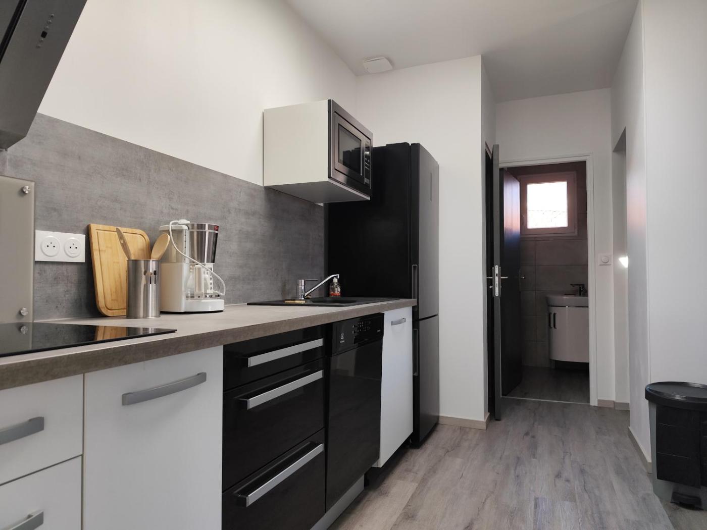 Appartement 2 Chambres. Featuring a private entrance, this apartment comprises 1 living room, 2 separate bedrooms and 1 bathroom with a walk-in shower and a hairdryer. Meals can be prepared in the well-fitted kitchen, which is equipped with a stovetop, a refrigerator, a dishwasher and kitchenware. Boasting a balcony with city views, this apartment also provides a coffee machine and a flat-screen TV. The unit offers 2 beds.