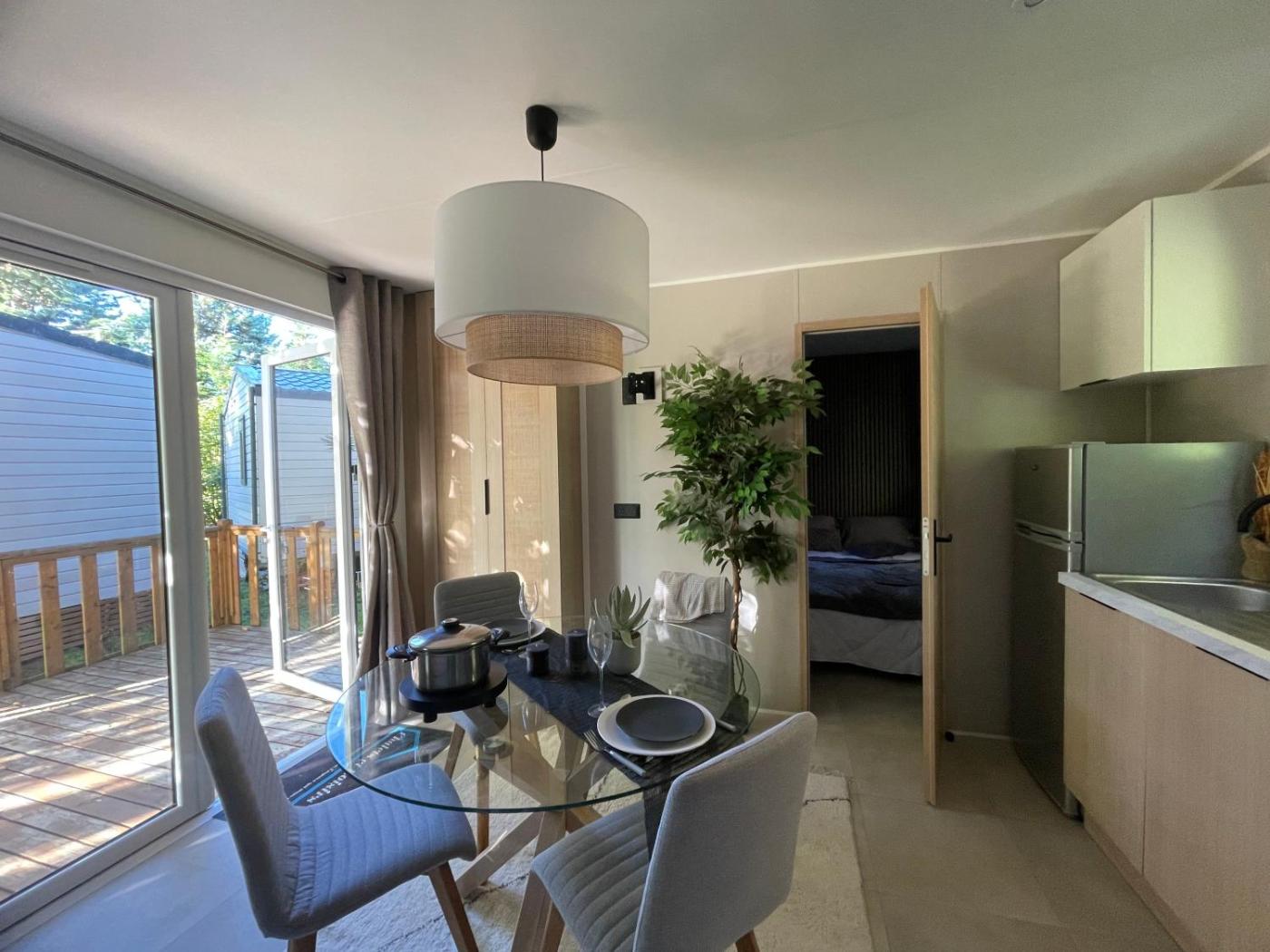 Mobile Home. This mobile home is comprised of 1 bedroom, a seating area and 1 bathroom with a shower. This mobile home features a dining area, a wardrobe, a flat-screen TV and an outdoor dining area. The unit offers 1 bed. ;
