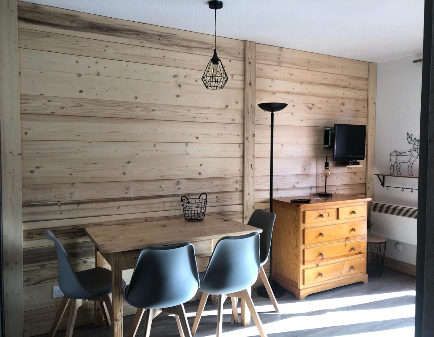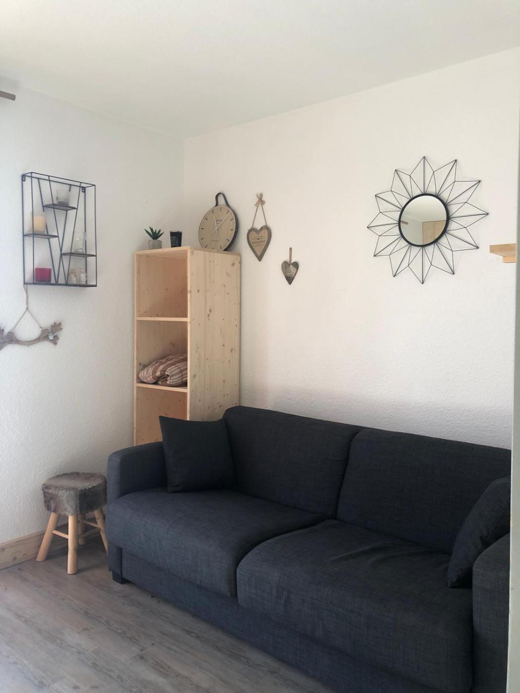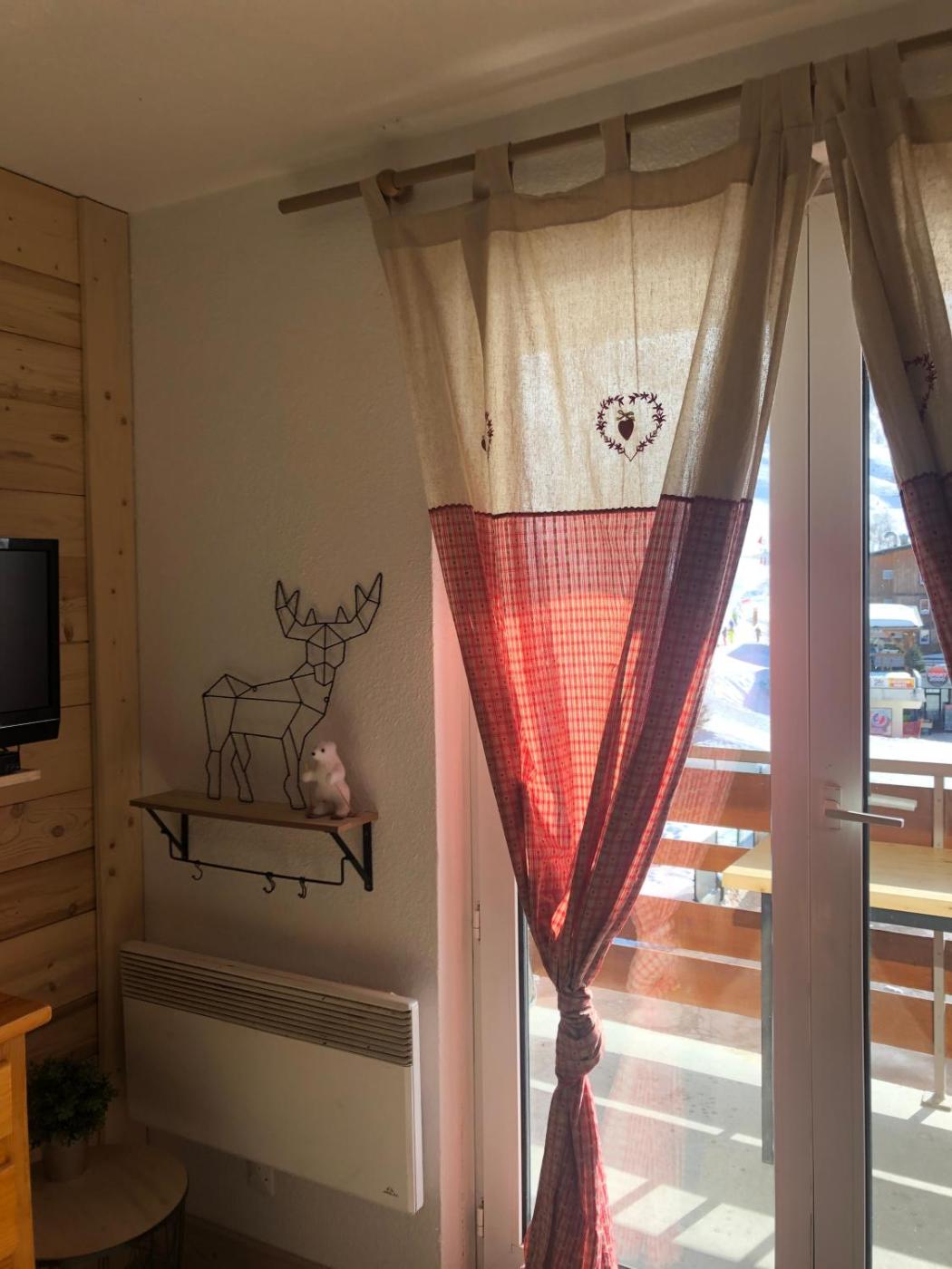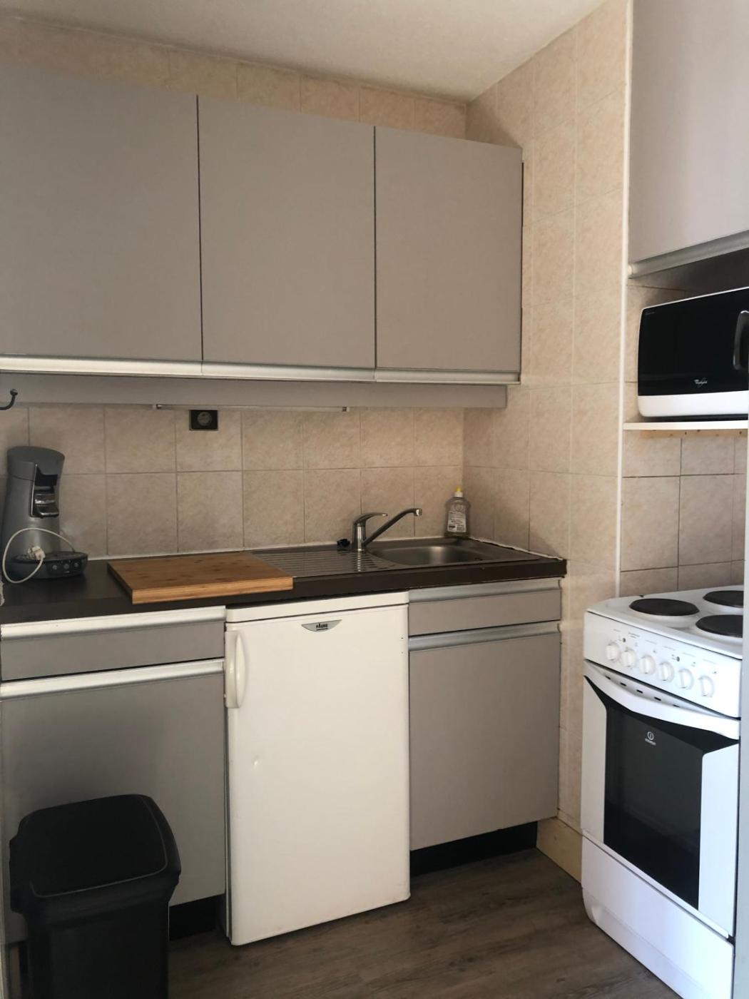Studio - Vue sur Montagne. The studios kitchen, which features kitchenware and a microwave, is available for cooking and storing food. Featuring a balcony with mountain views, this studio also provides a coffee machine and a TV. The unit offers 2 beds and 1 futon. ;