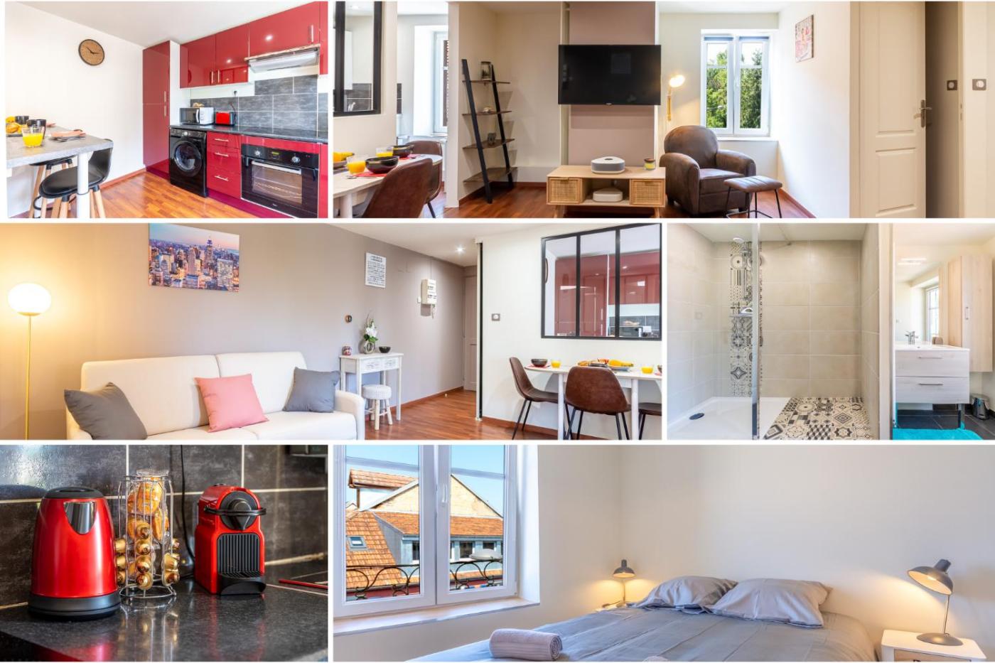 Appartement 1 Chambre. This apartment consists of 1 living room, 1 separate bedroom and 1 bathroom with a shower and free toiletries. Meals can be prepared in the well-fitted kitchen, which is equipped with a stovetop, a refrigerator, kitchenware and an oven. This apartment features a washing machine, flat-screen TV with streaming services, city views, as well as chocolate for guests. The unit offers 2 beds.