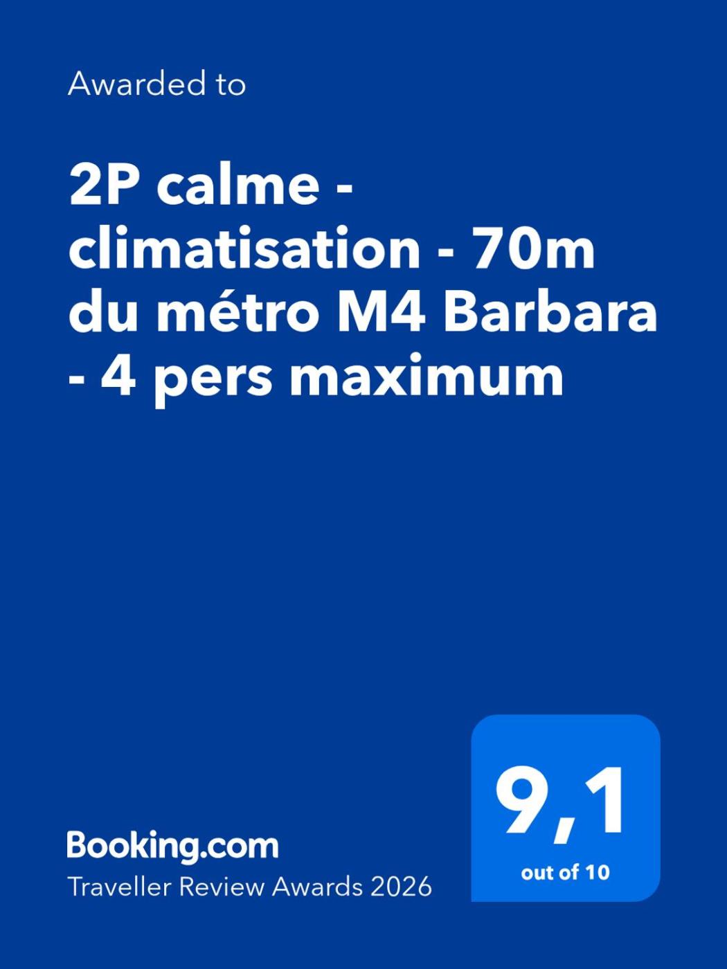 2P calme - climatisation - 70m du métro M4 Barbara - 4 pers maximum