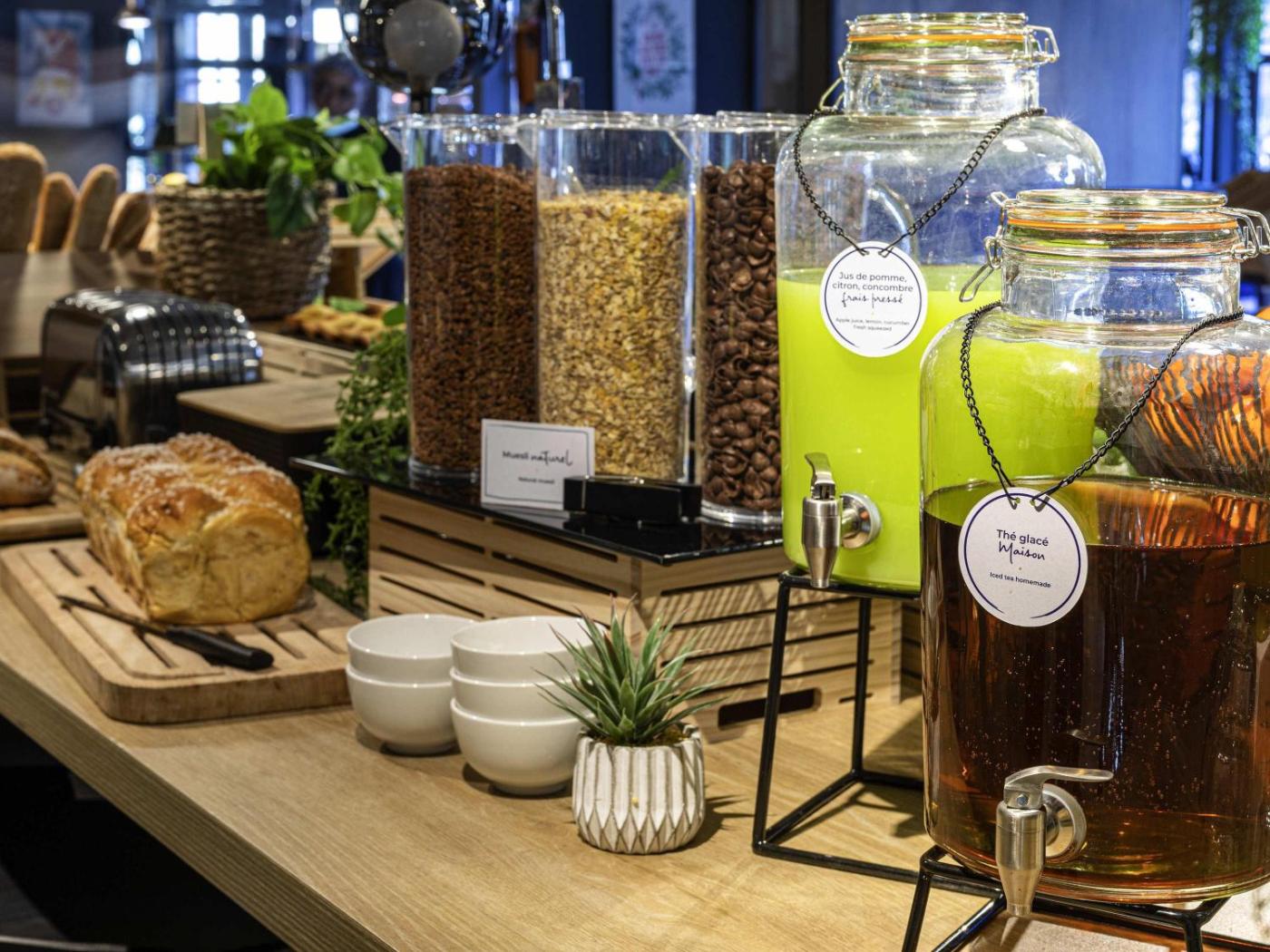 Létablissement sert tous les jours un petit-déjeuner buffet composé de mets sucrés et salés tels que des œufs, de la salade de fruits, des yaourts et des jus de fruits. Des viennoiseries préparées sur place et des madeleines fraîches sont également proposées, ainsi quune boisson chaude et un fruit à emporter. En dehors des horaires du petit-déjeuner, une option plus légère est disponible à partir de 4h00. Vous pourrez déjeuner et dîner au restaurant du lundi au vendredi.