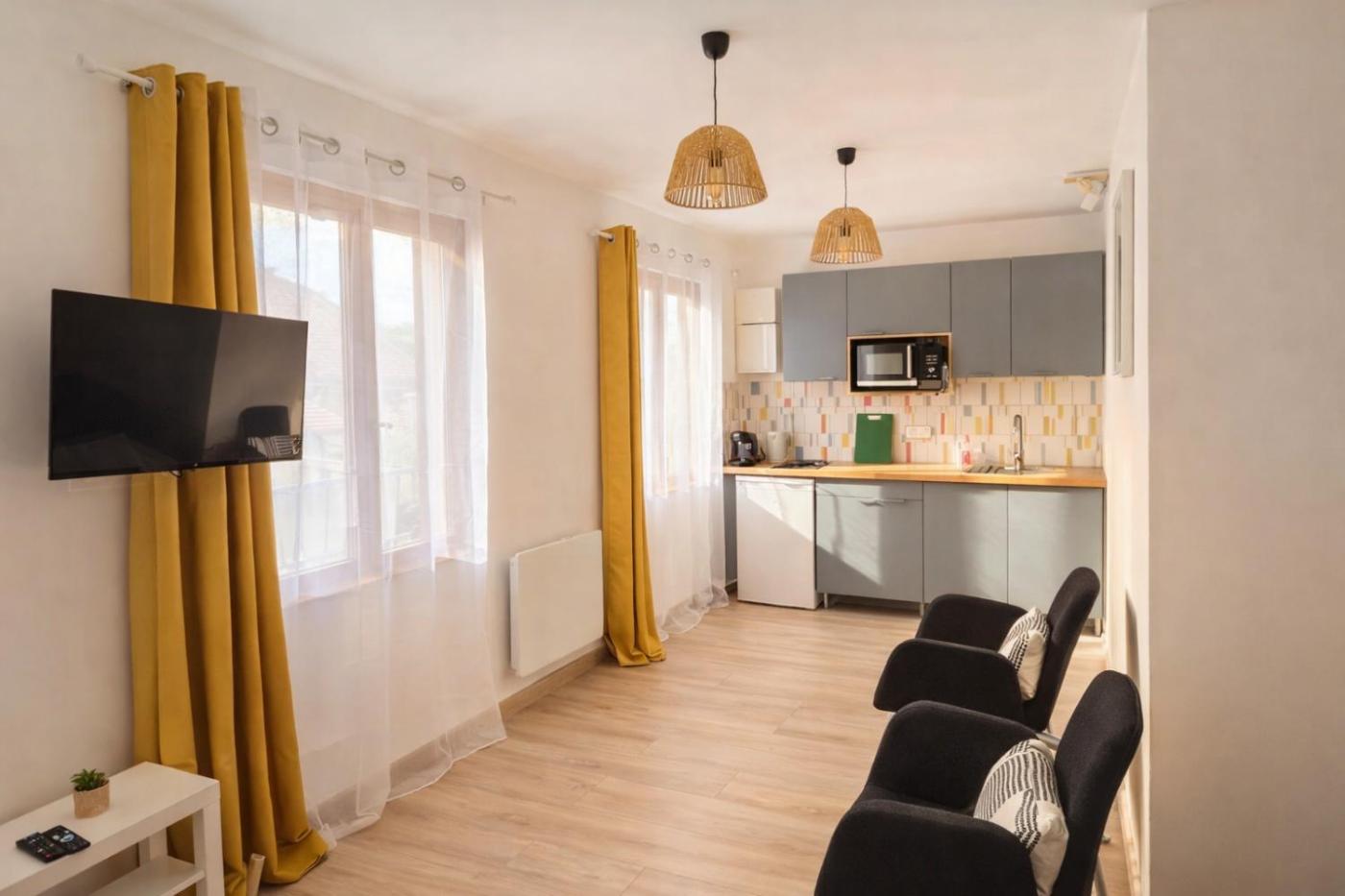 Appartement 1 Chambre. The apartments kitchen is available for cooking and storing food. This apartment has a washing machine, heating and a flat-screen TV. The unit has 1 bed.