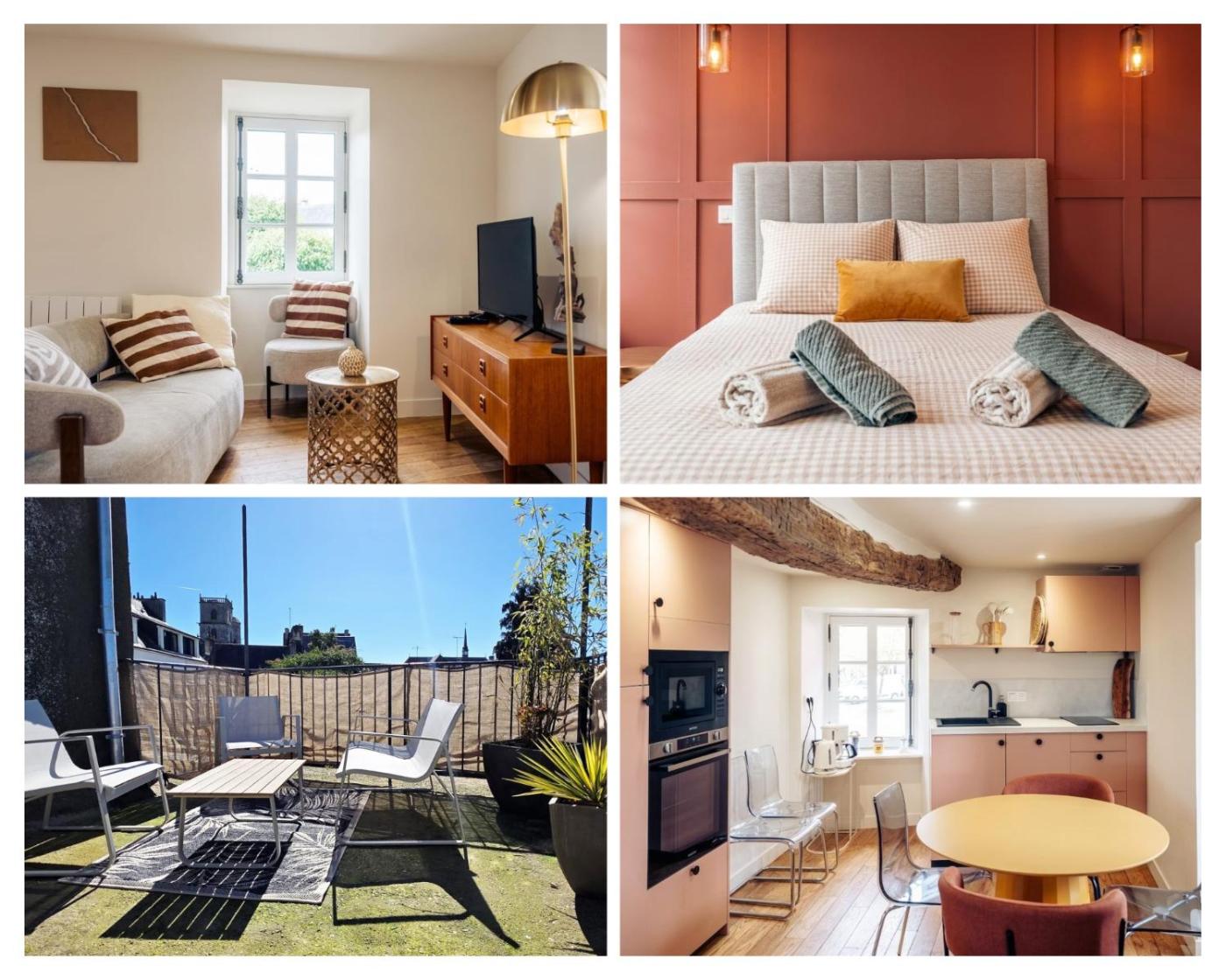 Appartement 1 Chambre avec Terrasse. This apartment comes with 1 living room, 1 separate bedroom and 1 bathroom with a shower and a hairdryer. Guests can make meals in the kitchen that features a stovetop, a refrigerator, a dishwasher and a microwave. Boasting a terrace with city views, this apartment also features a coffee machine and a flat-screen TV. The unit has 3 beds.