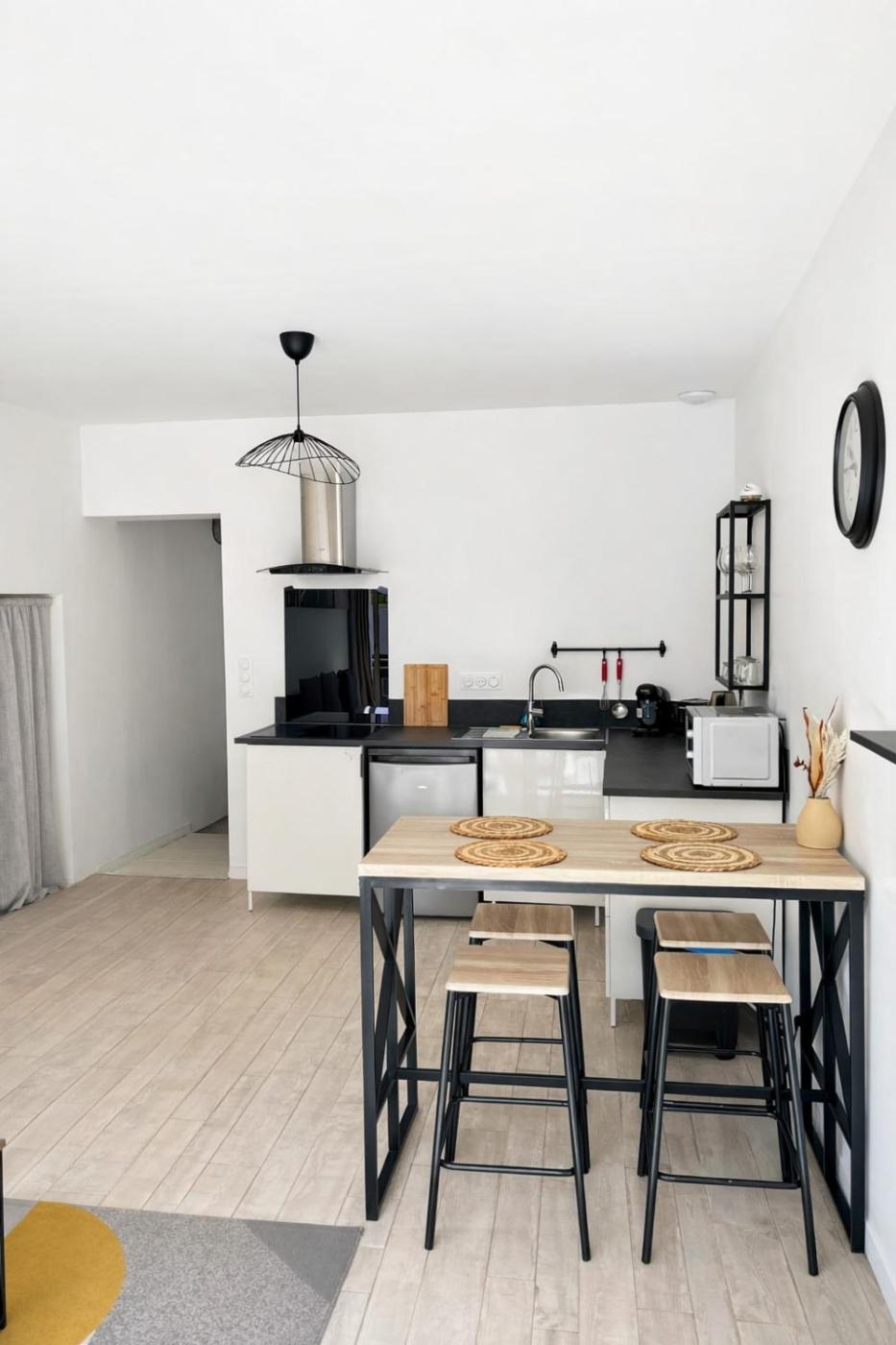 Cet appartement se compose de 2 chambres, dun salon, dune cuisine entièrement équipée avec un réfrigérateur et une machine à café, ainsi que de 1 salle de bains avec une baignoire. Des serviettes et du linge de lit sont disponibles.