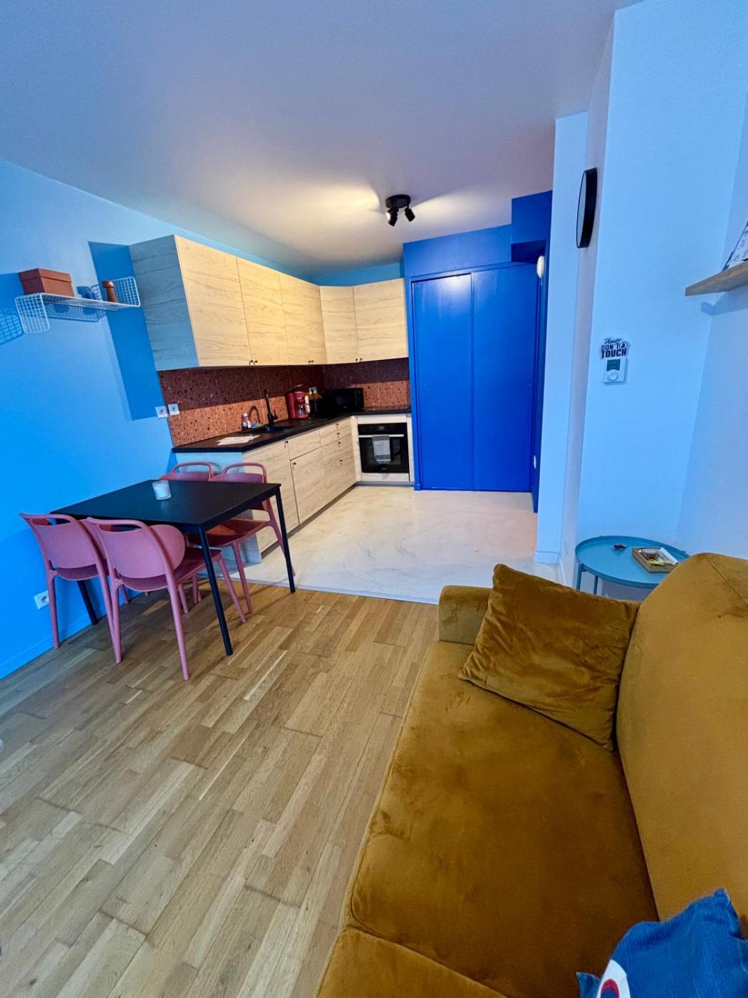 Cet appartement se compose de 1 chambre, dun salon, dune cuisine entièrement équipée avec un réfrigérateur et une machine à café, ainsi que de 1 salle de bains avec une douche et des articles de toilette gratuits. Des serviettes et du linge de lit sont à votre disposition.