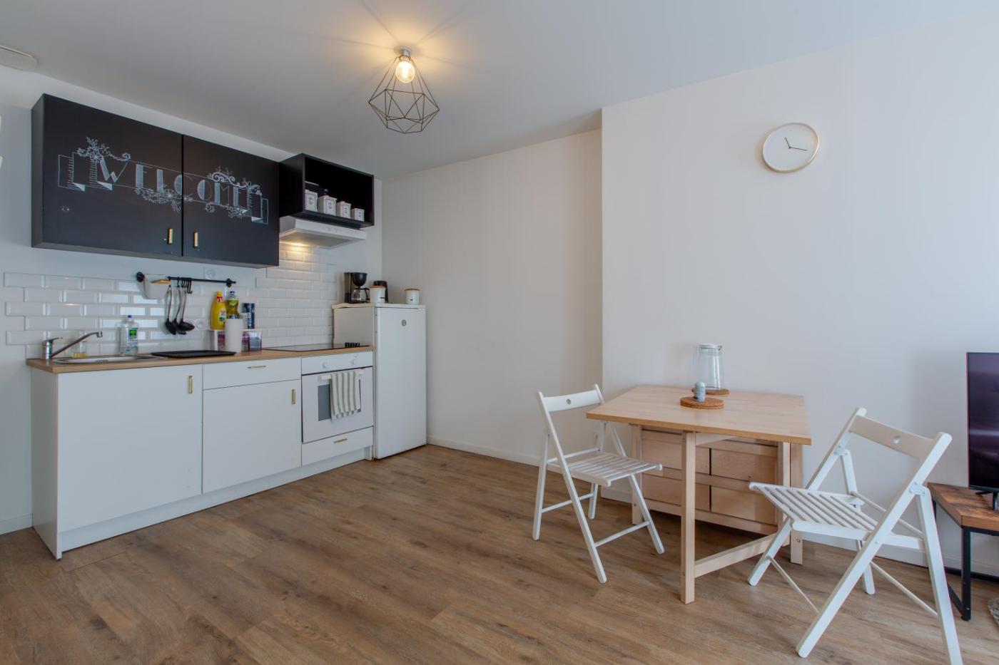 Appartement 1 Chambre. In the well-equipped kitchen, guests will find a stovetop, a refrigerator, kitchenware and an oven. The apartment features a flat-screen TV, a washing machine, a private entrance, a coffee machine as well as ancourtyard view. The unit has 1 bed.