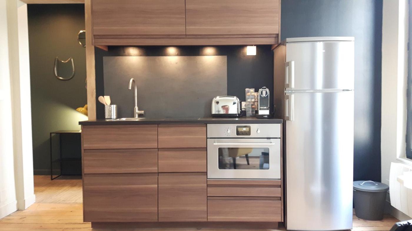 Appartement 1 Chambre. The apartment has 1 bedroom and 1 bathroom with a walk-in shower and free toiletries. In the kitchen, guests will find a stovetop, a refrigerator, kitchenware and an oven. The apartment features parquet floors, a seating area with a flat-screen TV, a washing machine, a tea and coffee maker as well as city views. The unit has 1 bed.