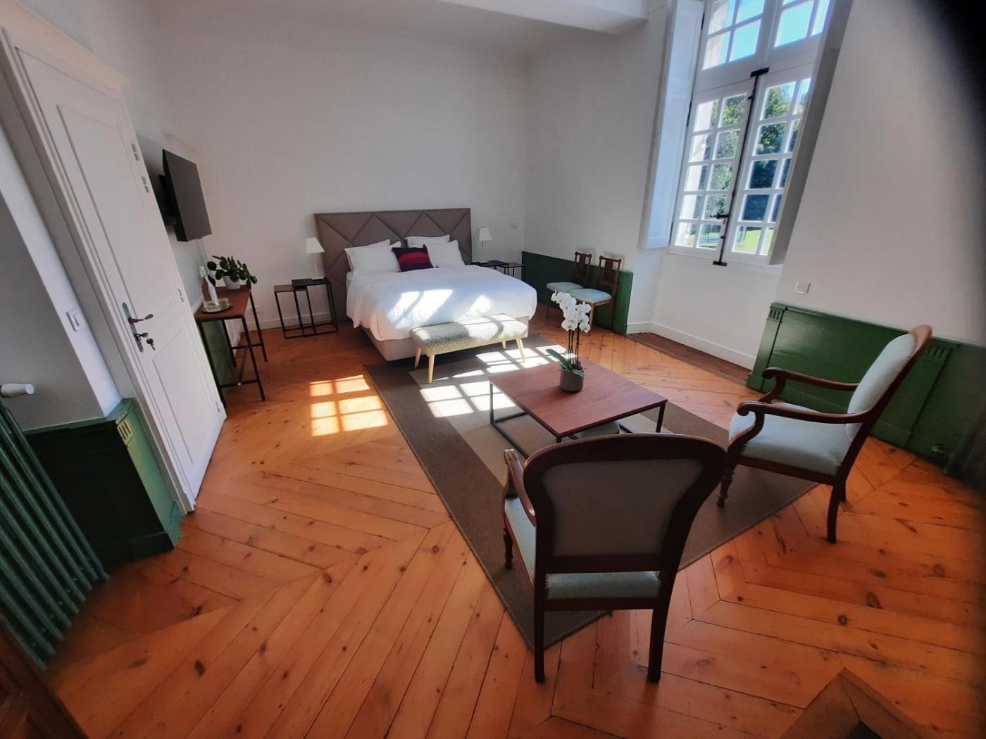 Chambre Double - Vue sur Jardin. The spacious double room features a private bathroom, soundproof walls, a tea and coffee maker, as well as a seating area with a flat-screen TV. The double room provides a wardrobe, parquet floors, heating, a TV, as well as garden views. The unit offers 1 bed. ;