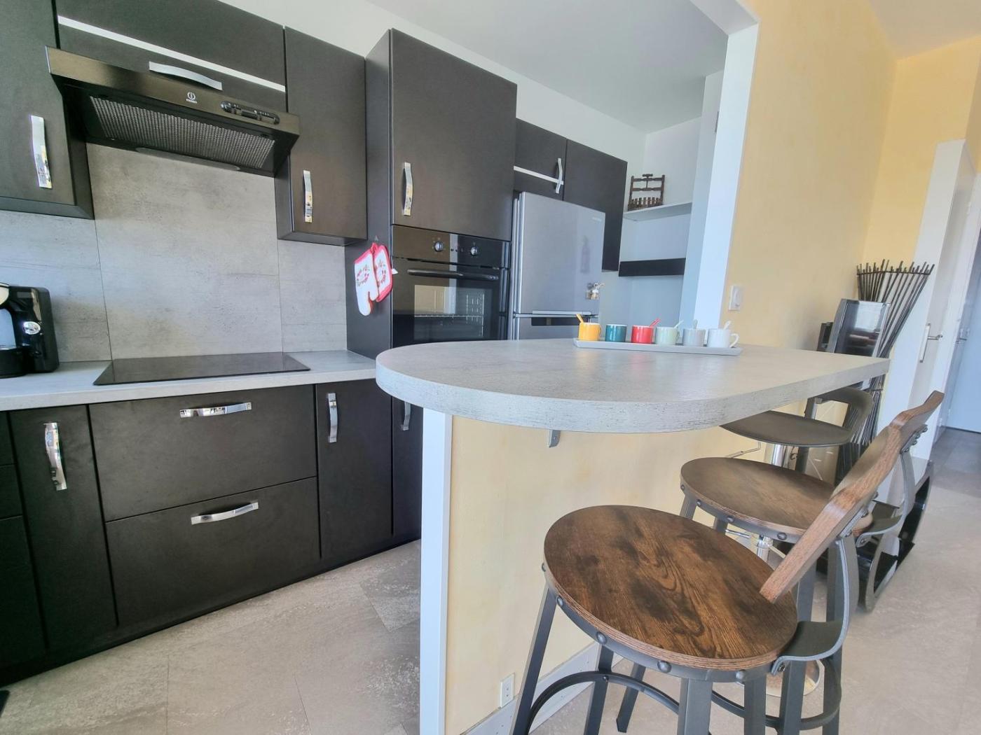 Appartement 2 Chambres. Boasting a private entrance, this spacious apartment also comes with 1 living room, 2 separate bedrooms and 1 bathroom with a bath. Guests will find a stovetop, a refrigerator, kitchenware and an oven in the well-equipped kitchen. The apartment also includes a barbecue. Featuring a terrace with sea views, this apartment also features a washing machine and a flat-screen TV. The unit has 3 beds.