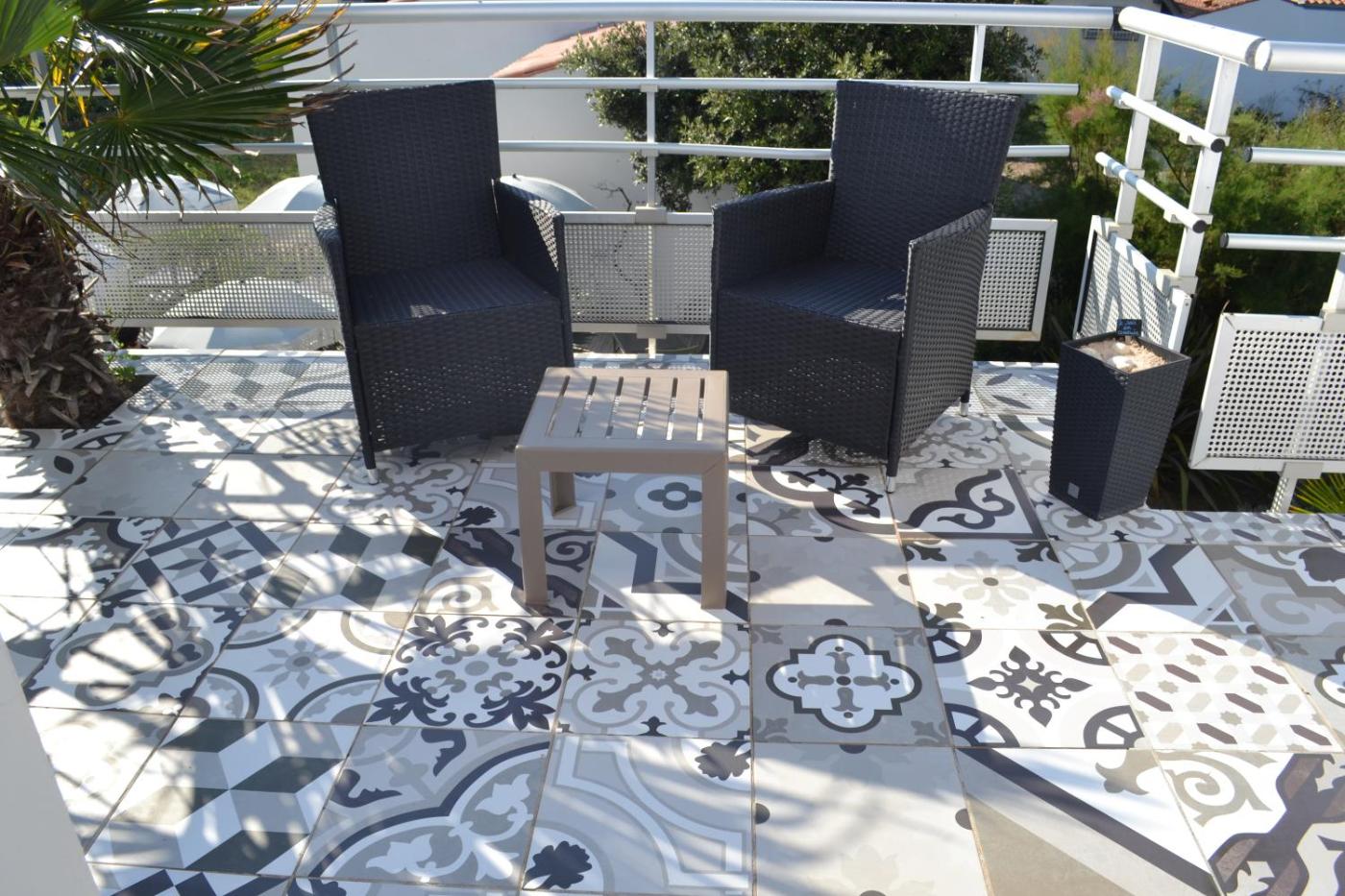Studio avec Terrasse. Ce studio dispose d’une petite terrasse commune. ;