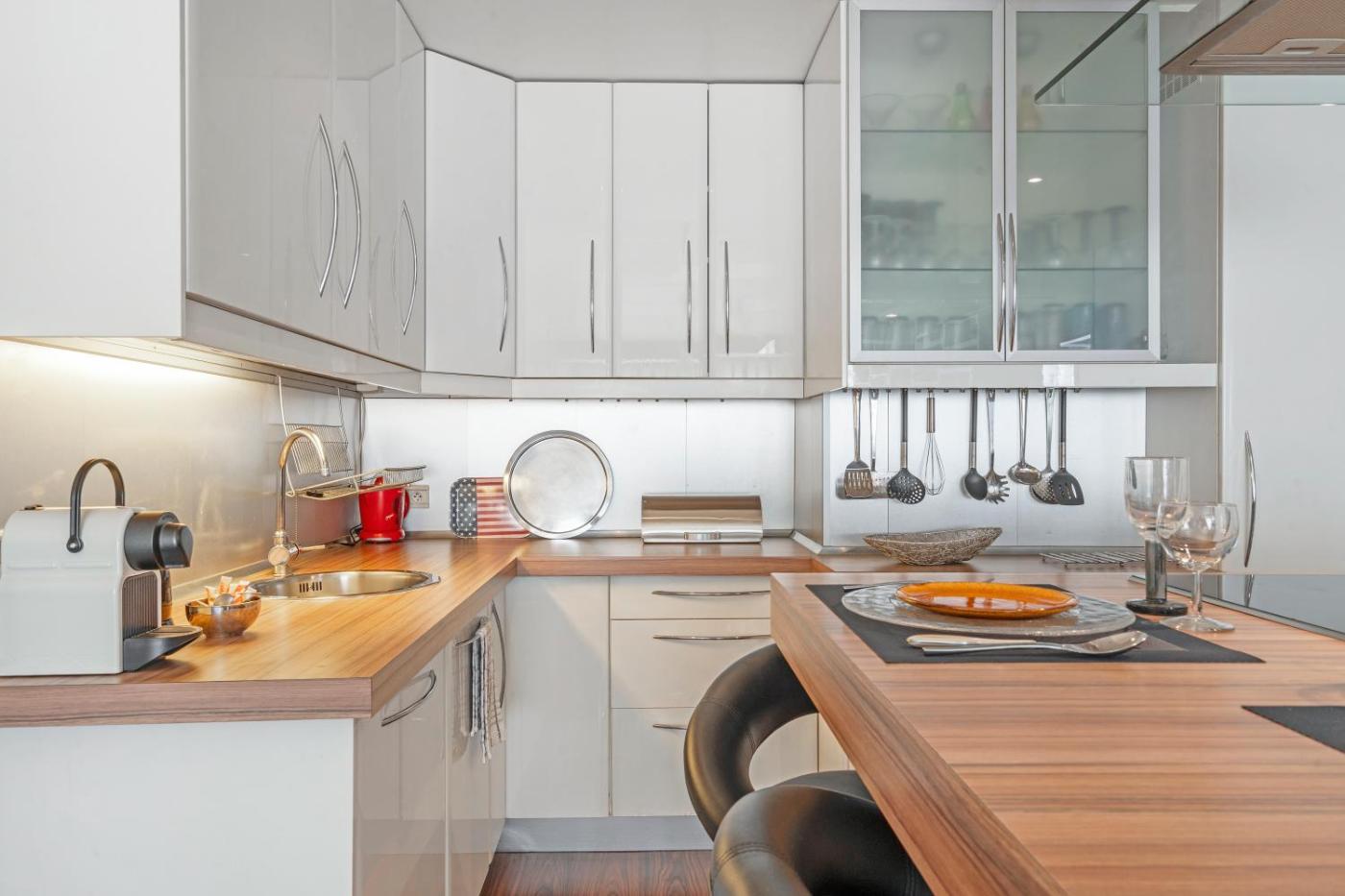Cet appartement avec climatisation se compose de 3 chambres, dun salon, dune cuisine entièrement équipée avec un réfrigérateur et une machine à café, ainsi que de 1 salle de bains avec une douche et des articles de toilette gratuits. Une télévision à écran plat avec les chaînes du satellite, un lecteur DVD et un ordinateur sont disponibles.