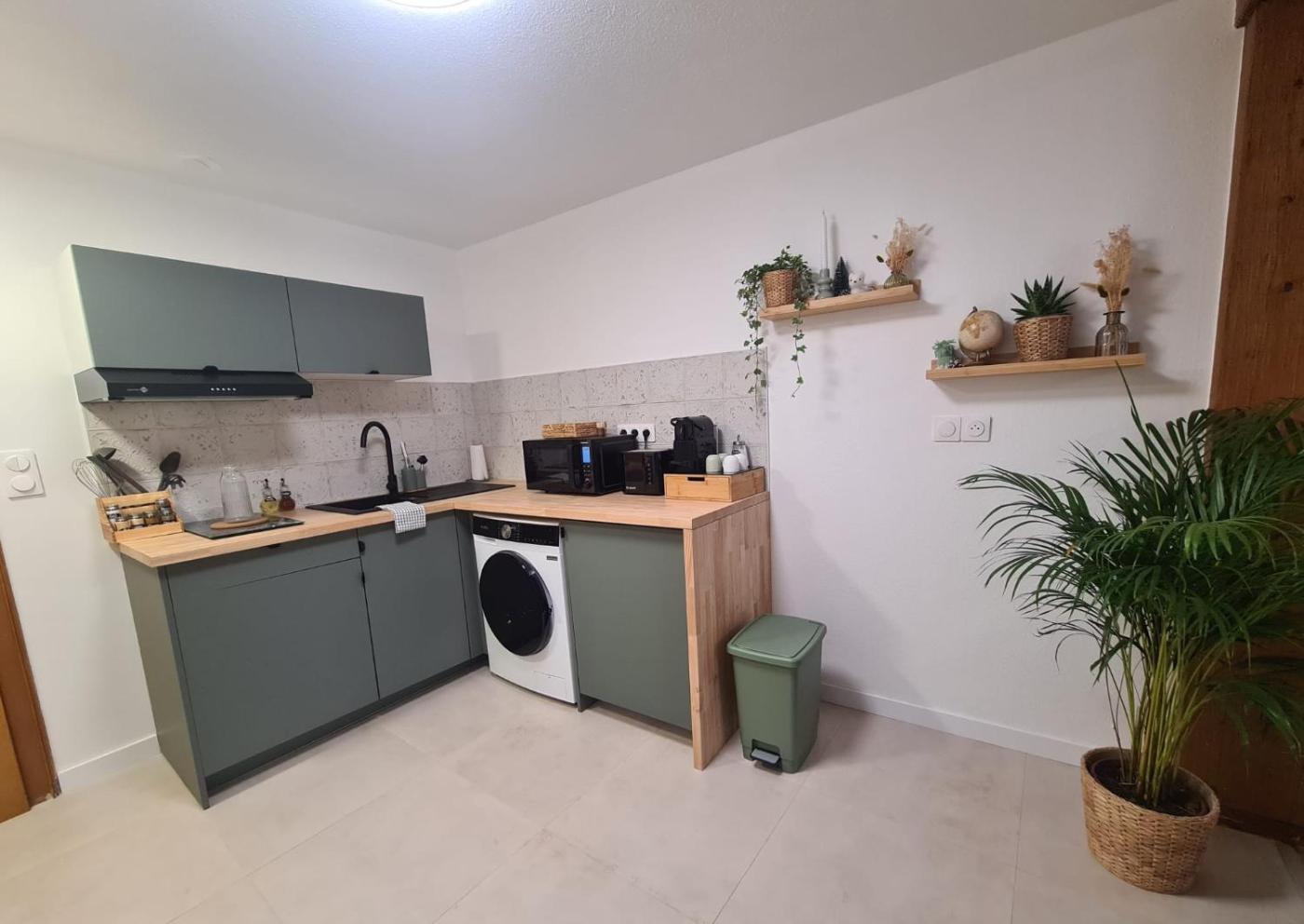 Appartement 1 Chambre. The fully equipped kitchen has a stovetop, a refrigerator, a microwave and a toaster. The apartment features a washing machine, a coffee machine, a sofa, parquet floors, as well as a flat-screen TV. The unit has 2 beds.