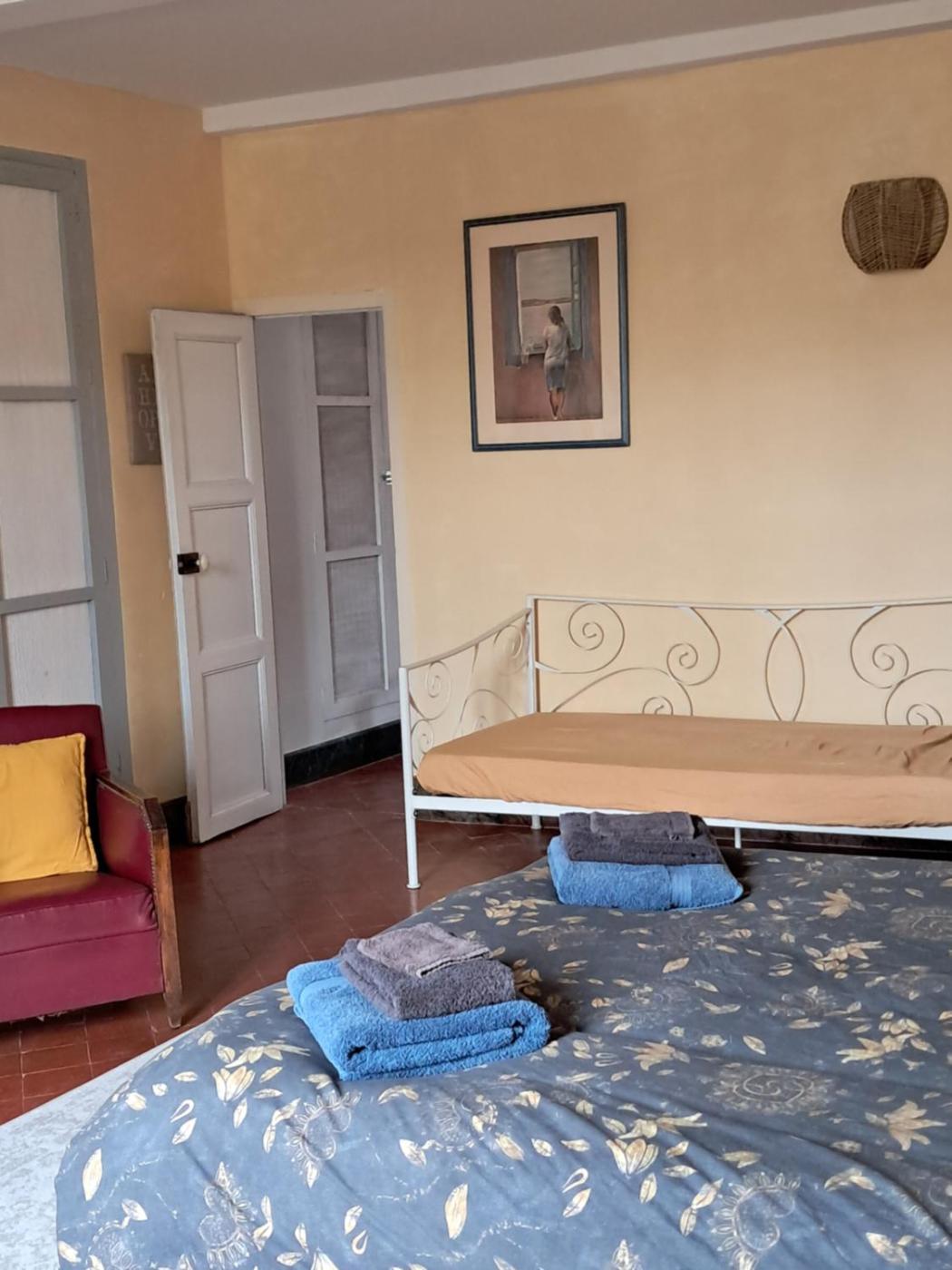 Chambre Triple. This triple room features a shared bathroom, a wardrobe, a tiled floor as well as an outdoor dining area. The unit offers 2 beds. ;