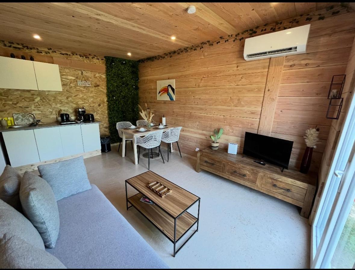 Chalet 1 Chambre. Boasting a private entrance, this air-conditioned chalet includes 1 living room, 1 separate bedroom and 1 bathroom with a shower and a hairdryer. Guests will find a stovetop, kitchenware, an oven and a microwave in the well-fitted kitchen. The chalet also features a barbecue. Featuring a terrace with garden views, this chalet also offers soundproof walls and a flat-screen TV. The unit has 2 beds.
