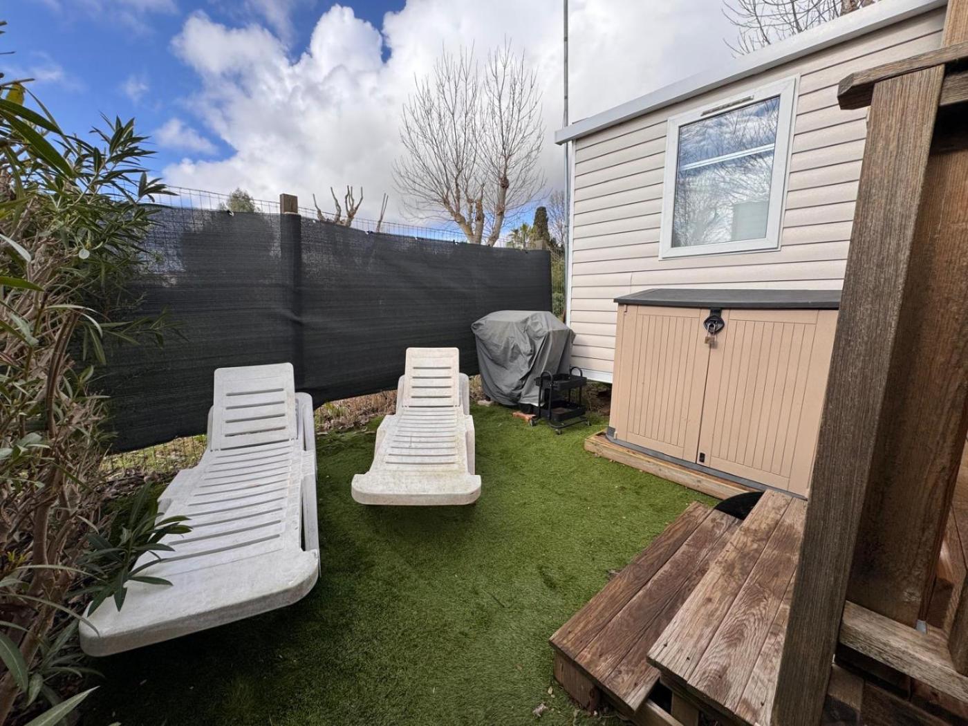 Mobile Home. This air-conditioned mobile home comes with 1 living room, 2 separate bedrooms and 1 bathroom with a shower. Guests will find a stovetop, a refrigerator, a dishwasher and kitchenware in the kitchen. The mobile home also includes a barbecue. This mobile home has a washing machine, a tea and coffee maker, flat-screen TV, as well as winechampagne for guests. The unit has 4 beds.