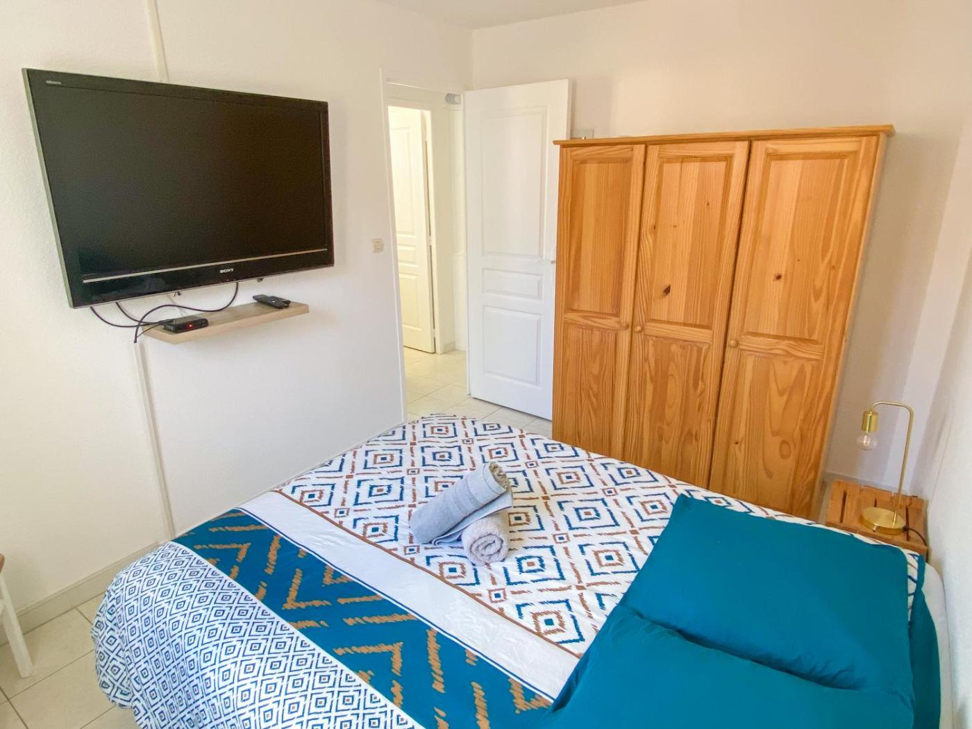Maison 2 Chambres. Boasting a private entrance, this air-conditioned holiday home includes a kitchen, 2 bedrooms and 1 bathroom with a shower and a hairdryer. Guests will find a stovetop, a refrigerator, a dishwasher and kitchenware in the well-fitted kitchen. The holiday home also features a barbecue. Featuring a terrace with garden views, this holiday home also offers a washing machine and a flat-screen TV. The unit has 2 beds.